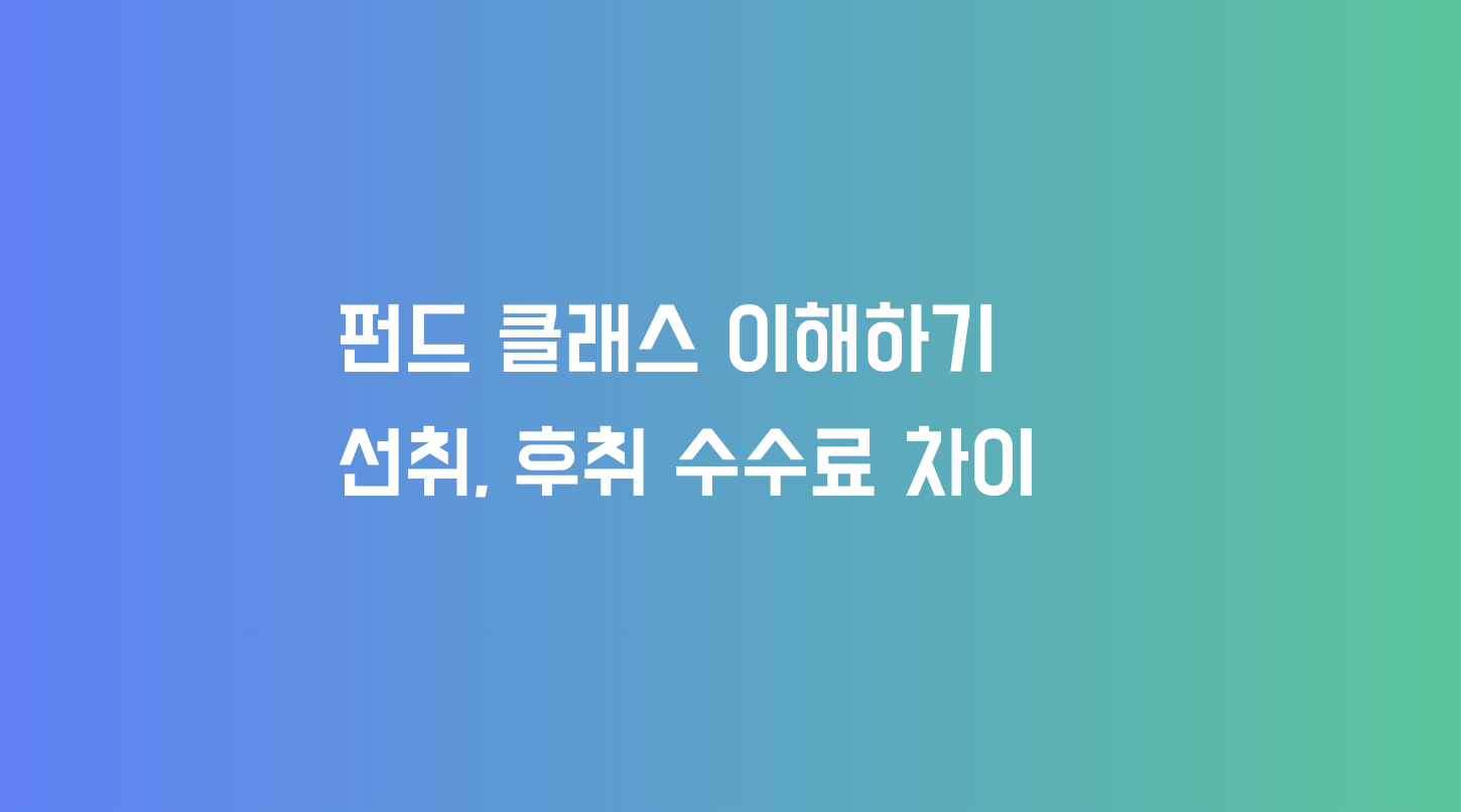 펀드 클래스 이해하기 (선취, 후취 수수료 차이)