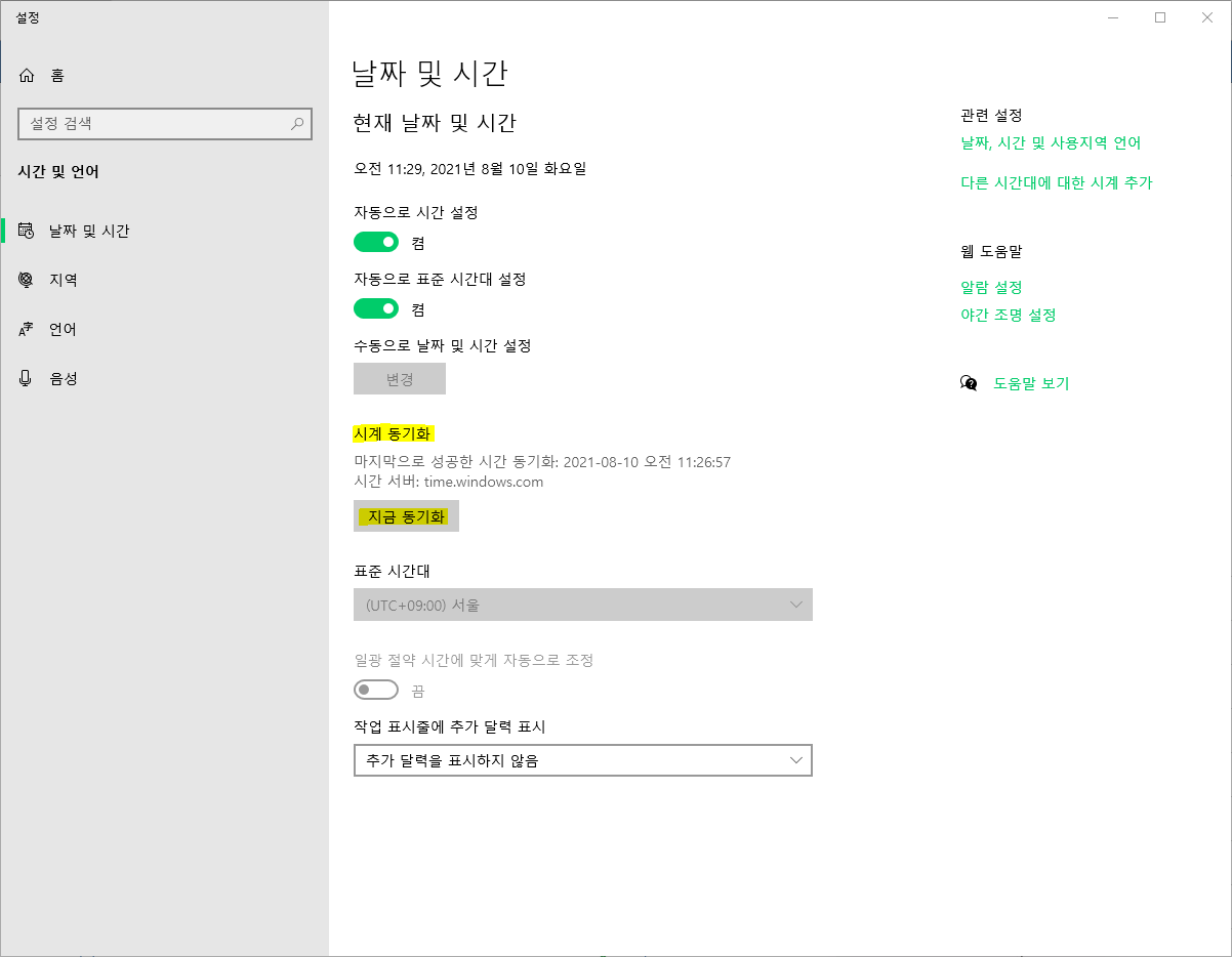 제어판에서 날짜 및 시간으로 들어갑니다.