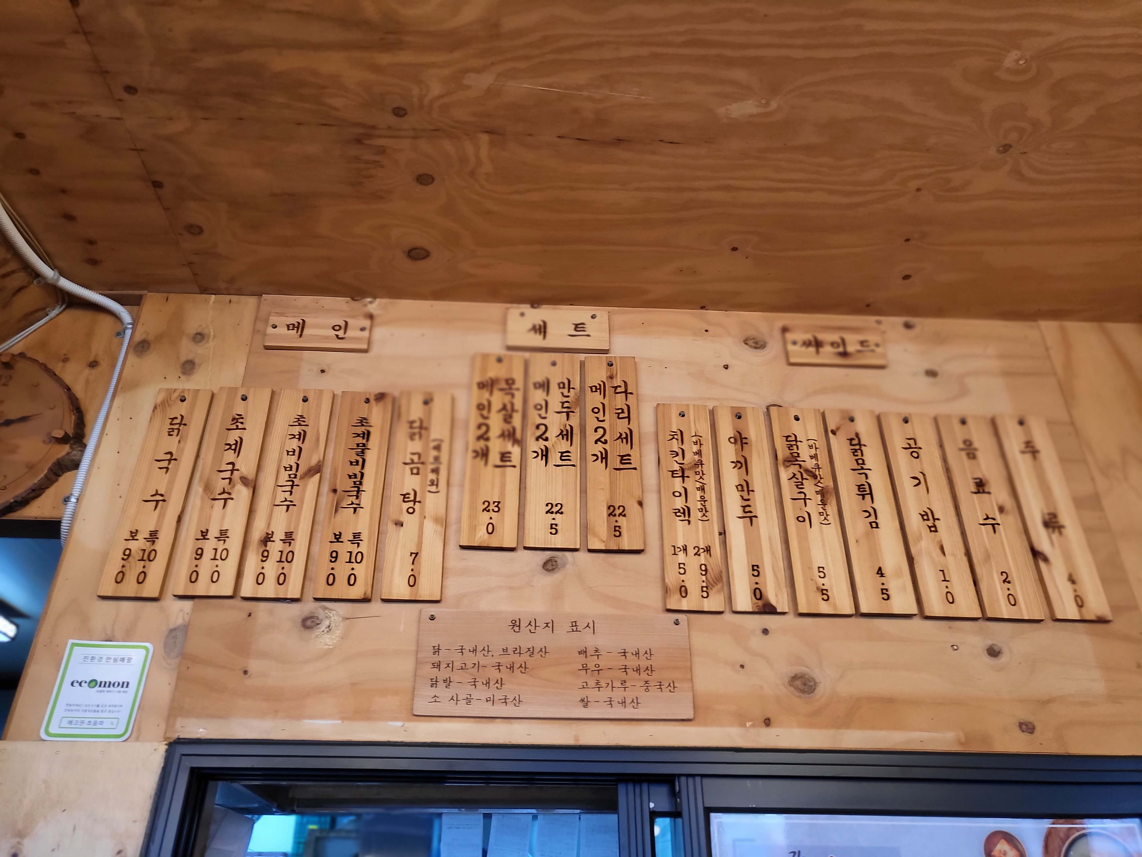 메뉴는 기본적으로 닭 칼국수와 초계국수를 팔아요.