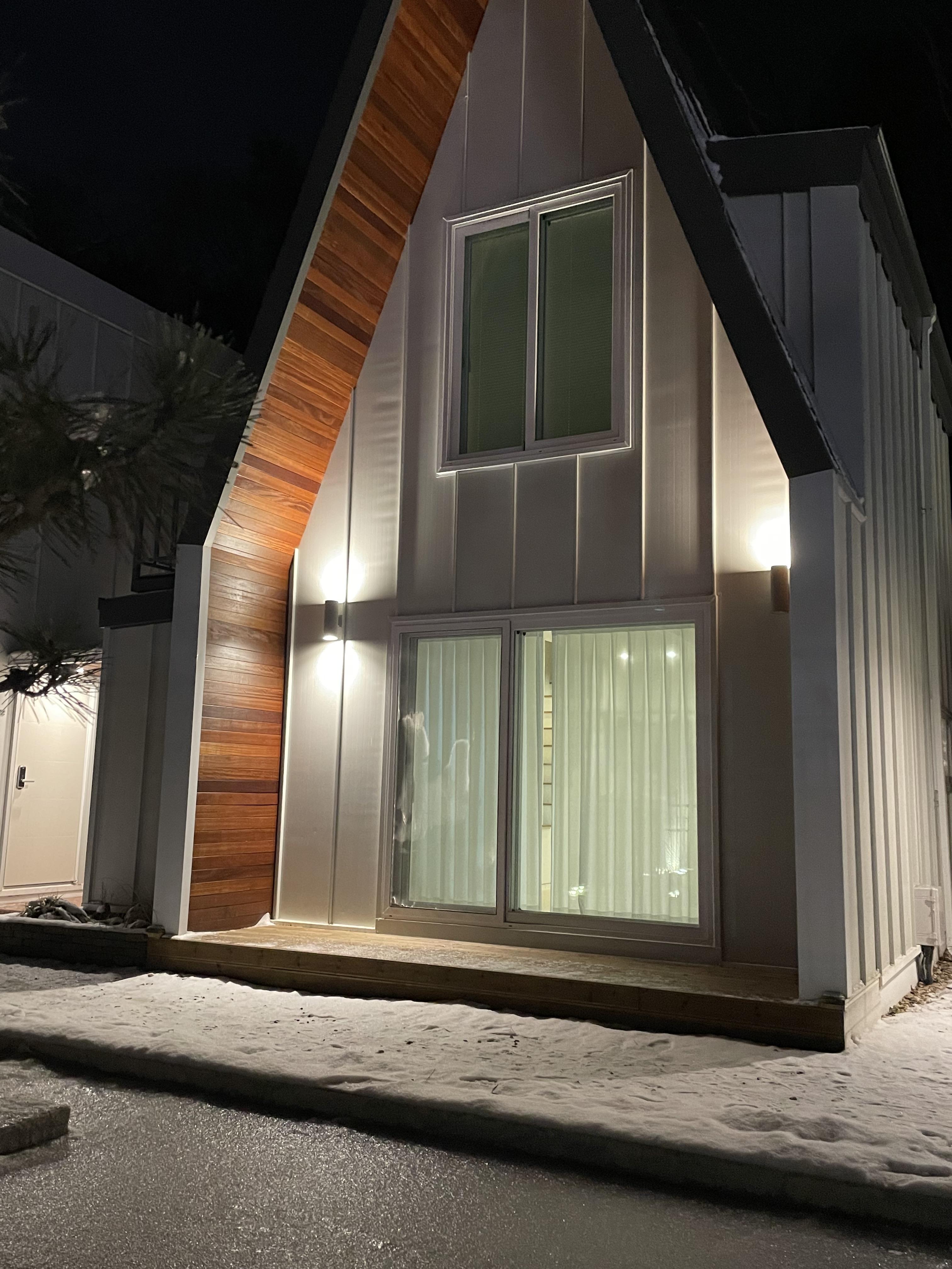 아래와 같이 한쪽은 통유리로 되어 있어서, 실내에서 봤을때 이쁘더라구요! 겨울이라 추울줄 알았는데, 난방 에어컨을 틀면 금방 따뜻해집니다. 바닥 난방도 돼서 자면서 오히려 더웠어요!
