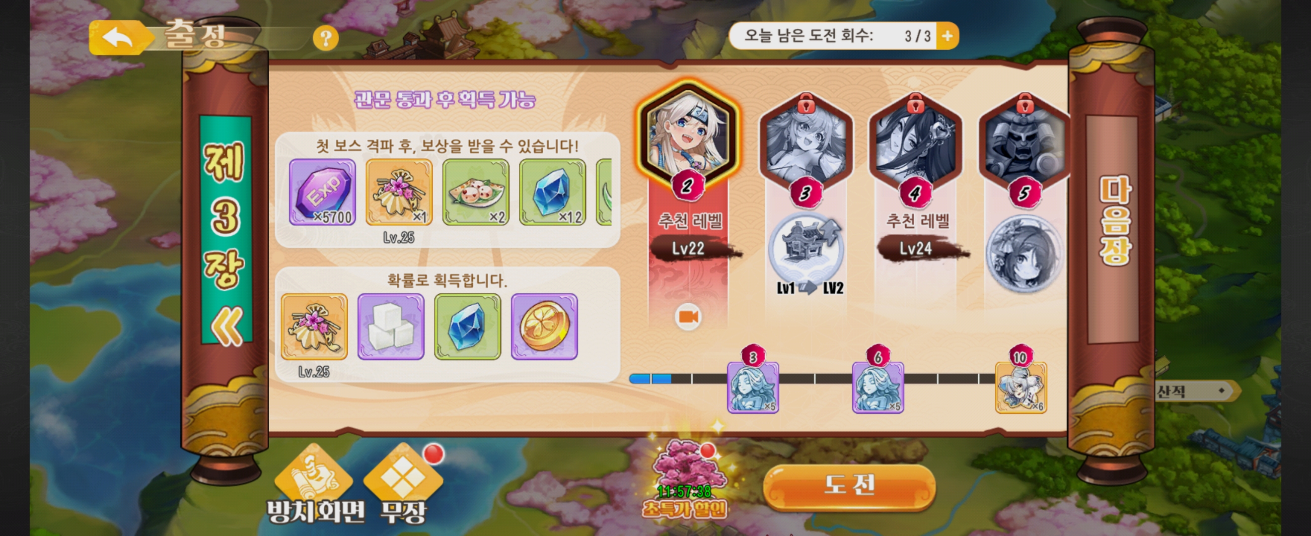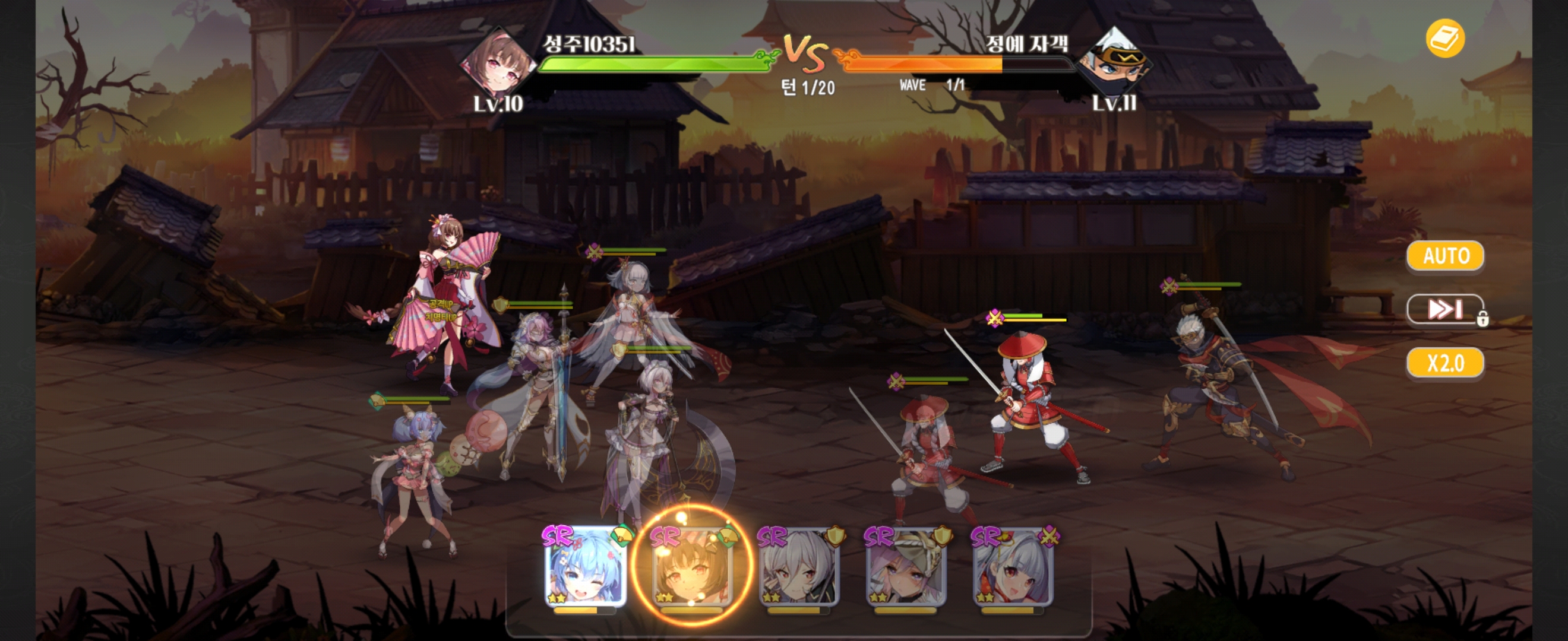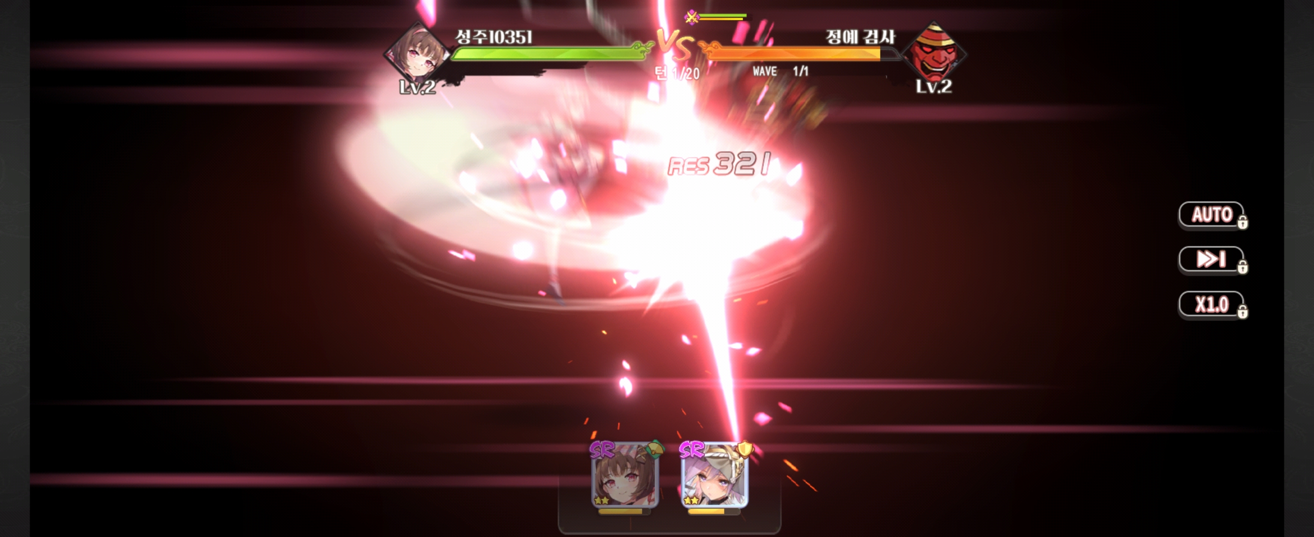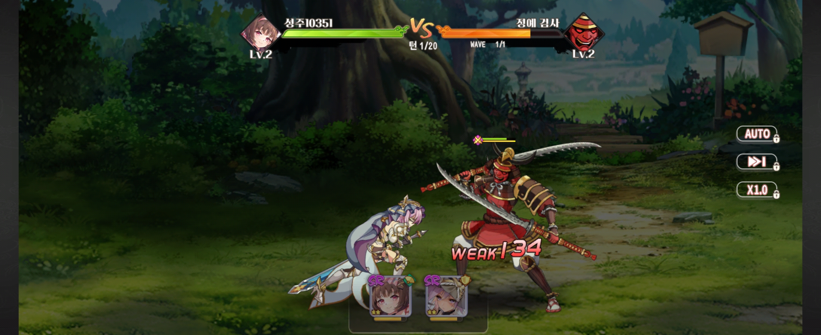 게임 초반이라 그런지 난이도는 쉬웠습니다. 처음부터 바로 배속, AUTO 기능을 사용하지는 못했어요.