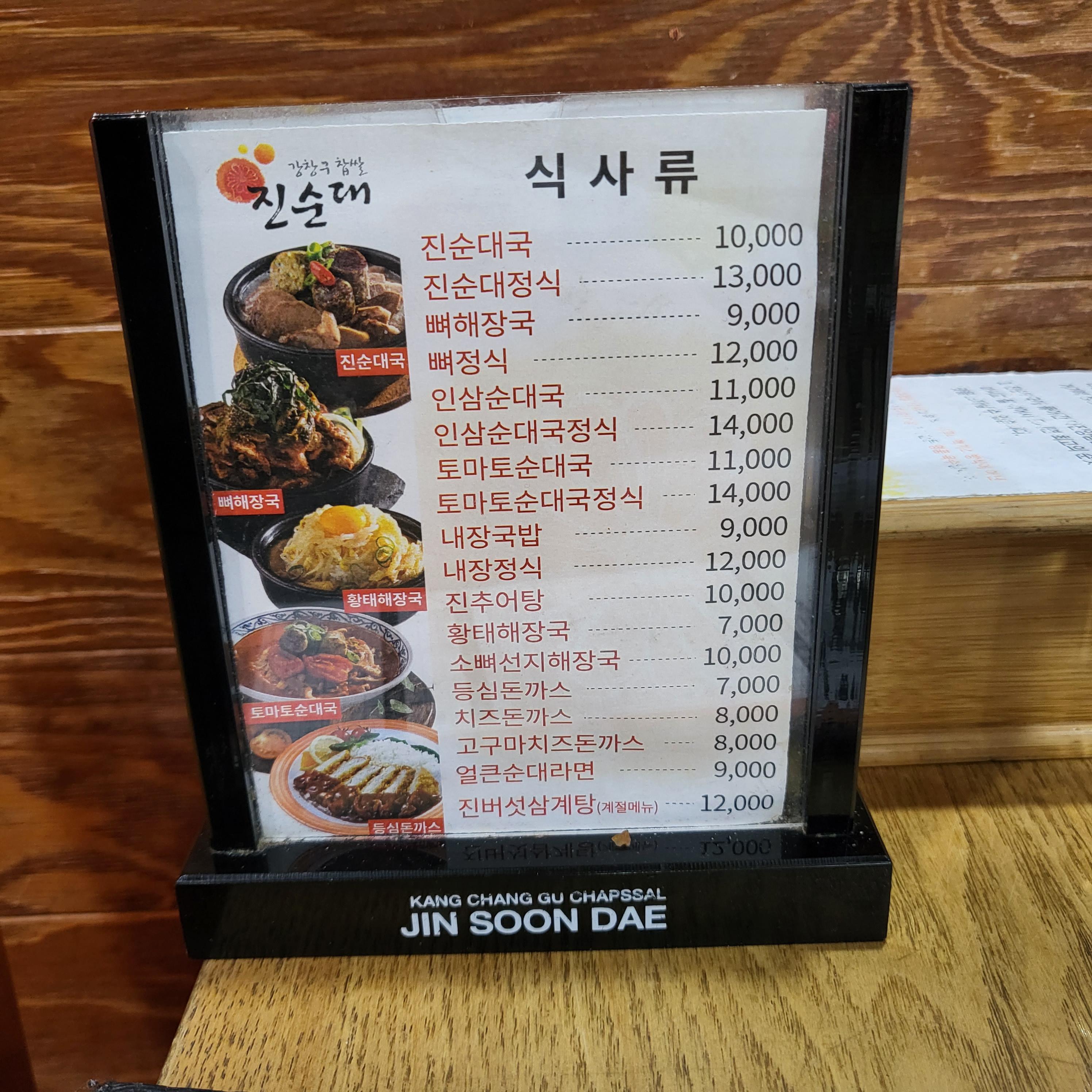 구리 쪽 스타벅스에서 놀다가 창문 너머로 "진순대 본점" 순대국 가게가 보여 들어가게 됐습니다.
