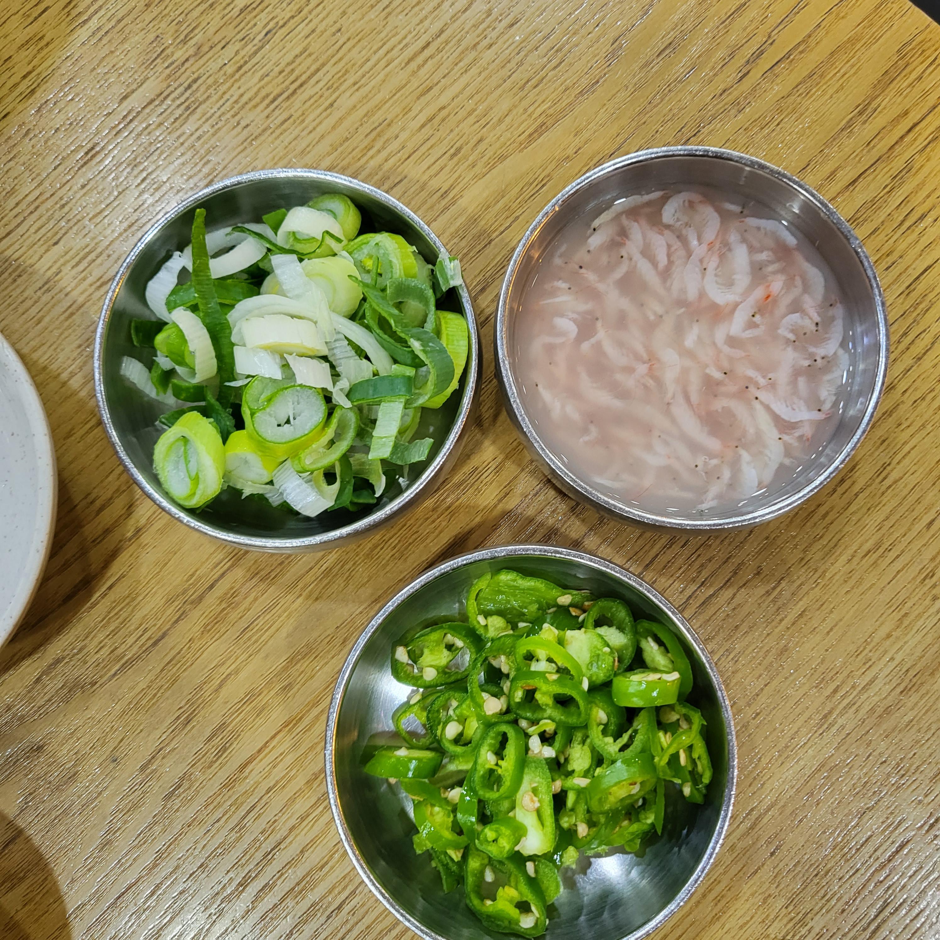 파, 새우젓, 고추, 겨자 소스, 양파 등 셀프로 가져다가 먹으면 됩니다. 상에 없다고 그냥 드시지 마시고 셀프 코너에서 가지고 오세요~