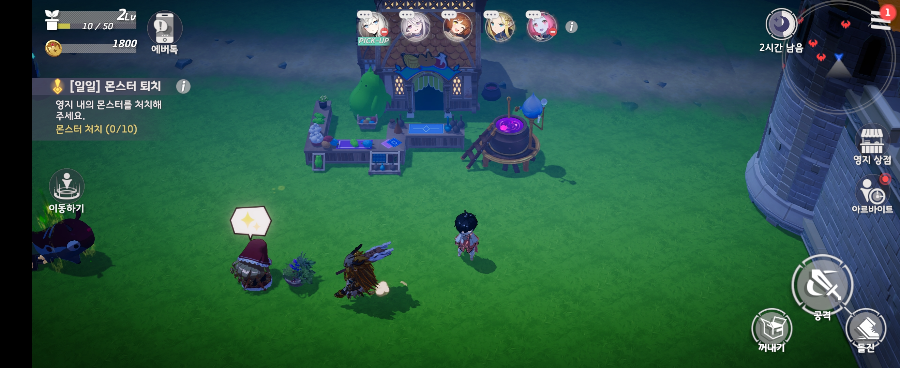 "영지"라는 컨텐츠가 있어서 건물을 짓거나, 가끔 일일 퀘스트가 나와서 몬스터를 잡을 수 도 있습니다.