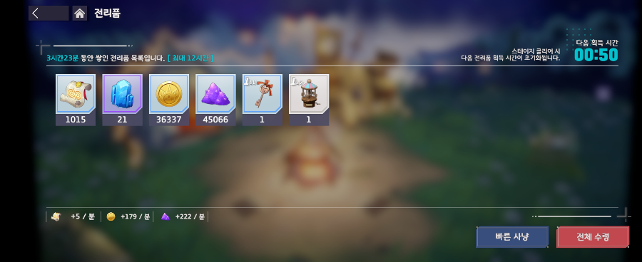 가끔씩 생각날때마다 들어가서 전리품을 획득해줘야 하더라구요.