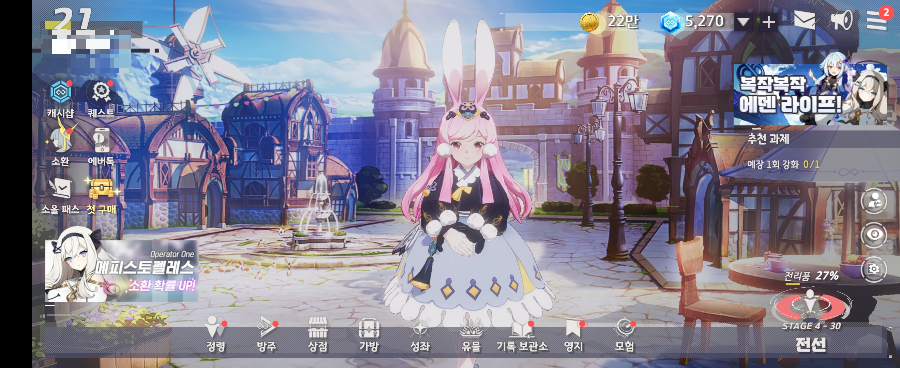 처음 게임에 접속하면 아래와 같은 화면이 나오는데 일러스트 퀄리티도 좋고, 분위기가 생각보다 좋았어요