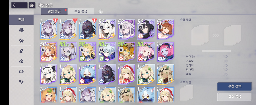 승급을 통한 강화. "AFK 아레나" 게임과 같이 같은 영웅을 합쳐서 더 높은 등급으로 만들 수 있었어요.