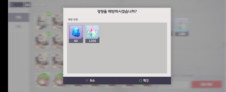 레벨업을 위해서 사용되는 재화가 있는데, 그때 필요한 재화를 낮은 등급의 캐릭터를 "정령해방"을 통해 재화를 획득할 수 있어요