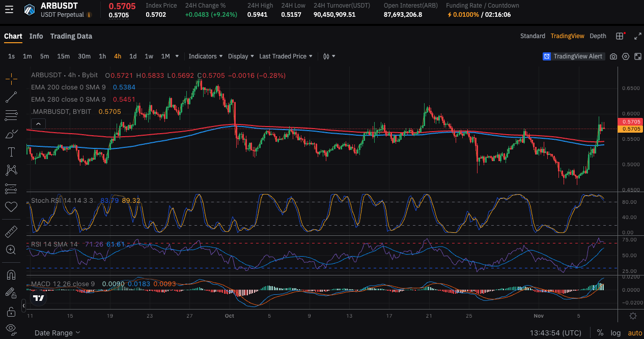 아비트럼(ARB) 4시간봉 기준 가격 예측 분석 (2024.11.07 22시 기준)